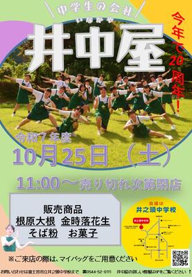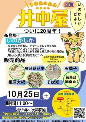 今年度の井中屋は、10月25日(土)に井之頭中学校で出店します。